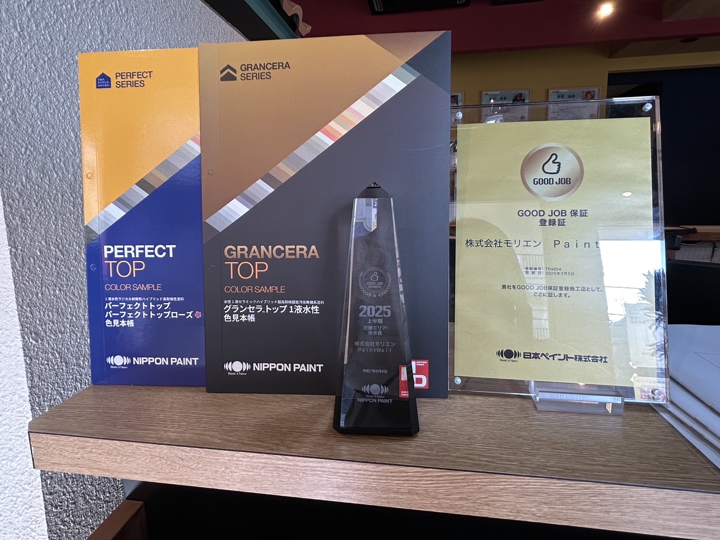 HOME > 現場ブログ > お知らせ > 施工後も安心!日本ペイント公式「GOOD JOB保証」で近畿エリア優秀賞を獲得しました!! > ペイントウォールが「GOOD JOBアワード2025上半期」で近畿エリア優秀賞を受賞しました