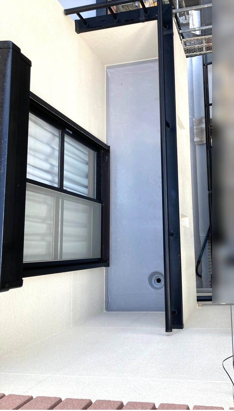 HOME > 施工事例 > 外塀塗装 > 西宮市T様邸の外壁·付帯·陸屋根防水塗装工事 多彩模様塗料(ネオフレッシュティアラ)塗装//阪神地域(西宮·芦屋·宝塚·川西·伊丹)の外壁塗装·屋根塗装ならPaintWall > ペイントウォール西宮 防水塗装後