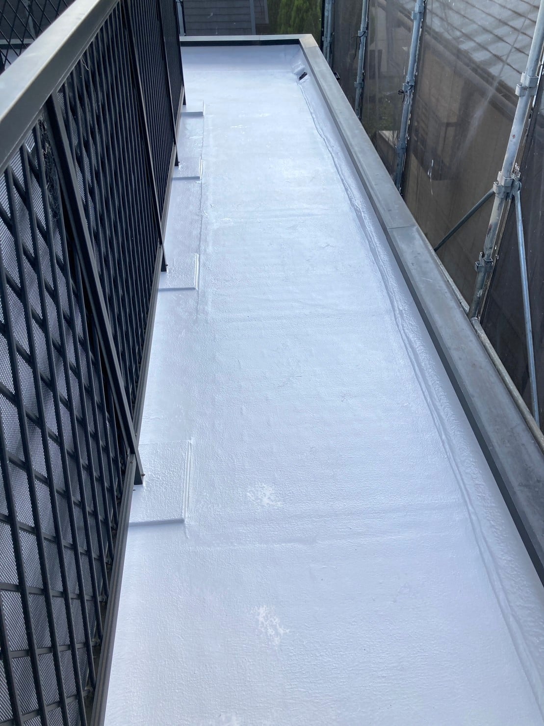 HOME > 施工事例 > 外塀塗装 > 西宮市T様邸の外壁·付帯·陸屋根防水塗装工事 多彩模様塗料(ネオフレッシュティアラ)塗装//阪神地域(西宮·芦屋·宝塚·川西·伊丹)の外壁塗装·屋根塗装ならPaintWall > ペイントウォール西宮 防水塗装後